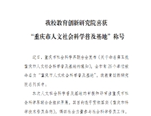 近日,重庆市社会科学界联合会发布《关于命名第五批重庆市人文社会科学普及基地的通知》,全市有26个单位被命名为“重庆市人文社会科学普及基地”,我教育创新研究院名列其中。