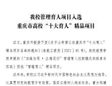 近日,重庆市教委下发《关于公布第三批重庆市“十大育人”精品项目名单的通知》(渝教工委发〔2021〕45号),beat365官网教育学院申报的《“四维协同 • 立德促行”管理育人创新模式的探索与实践》获批“管理育人”精品项目。