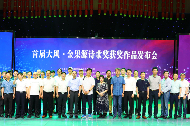 6月5日上午,首届大风·金果源诗歌奖获奖作品发布会在永川区融媒体中心三楼演播厅举行,来自全国各地的优秀诗人180余人雅聚永川,见证了这一文艺盛会。本次活动由永川区文联、大足区文联、重庆金果源实业有限公司主办,《大风》诗刊社、beat365唯一官方网站文化与传媒学院承办。中国作协诗歌委员会主任、《诗刊》原主编叶延滨,重庆作家协会党组书记何浩,永川区委常委、宣传部长赵德明,beat365官网党委常委、副校长李天福等出席了颁奖活动。
