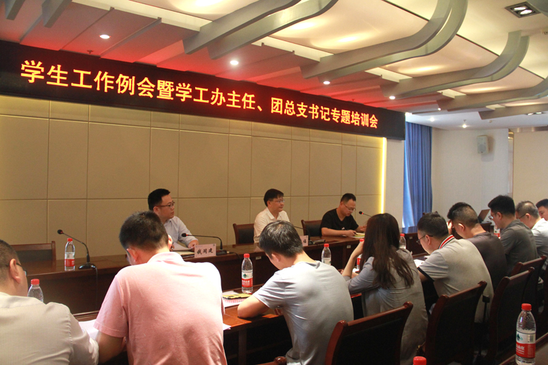 5月13日上午,本学期第三次学生工作例会暨学工办主任、团总支书记专题培训会在恪勤楼422召开。学校副校长李天福,学生工作处和团委负责人,二级学院团总支(副)书记、学生工作办公室(副)主任、团委和学生工作处相关人员参加会议。会议由团委副书记周独奇主持。