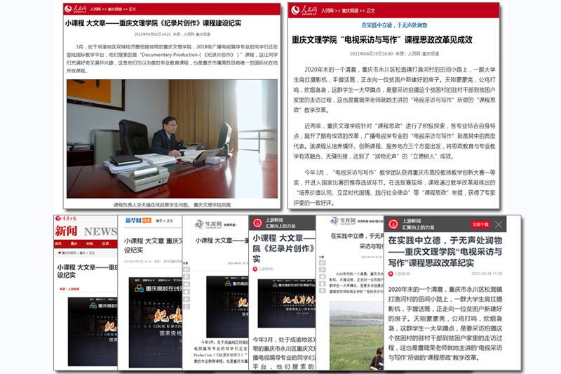 近日,人民网、上游新闻、华龙网、新华网、重庆晨报等多家媒体报道beat365官网文化与传媒学院“纪录片创作”“电视采访与写作”课程教学改革举措与成果。
