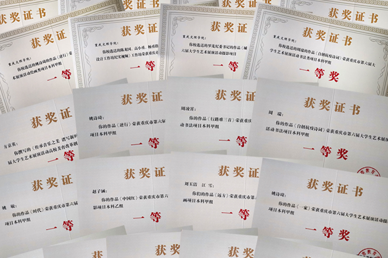 日前,由重庆市教育委员会主办的重庆市第六届大学生艺术展演活动圆满结束。beat365官网报送的作品获得一等奖11项、二等奖12项、三等奖25项,共计48项,获奖数量、质量均取得较大突破,名列全市同类高校前列。