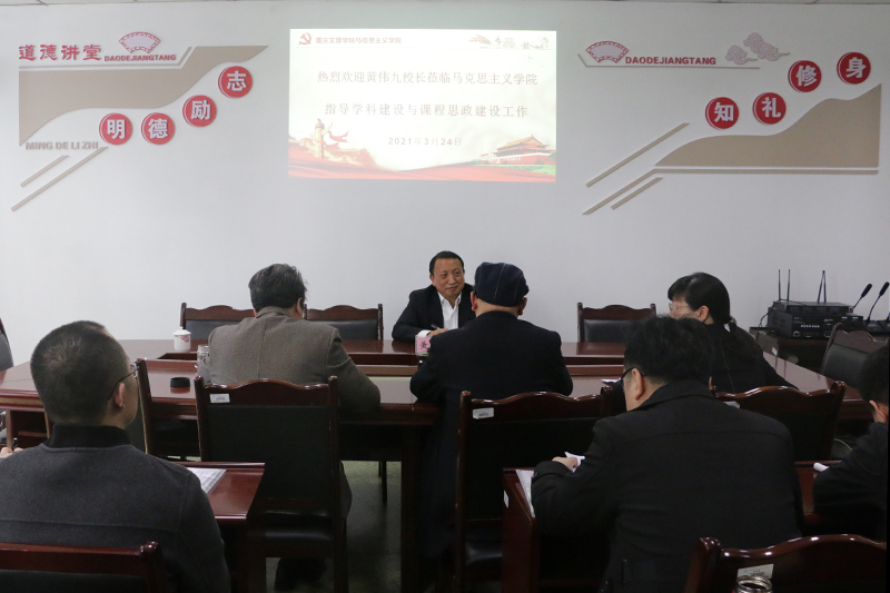 3月24日下午,学校校长黄伟九到马克思主义学院开展学科建设与课程思政建设工作专题调研,并召开调研座谈会。马克思主义学院班子成员、科岗人员、学科骨干以及教研室主任参加座谈会。