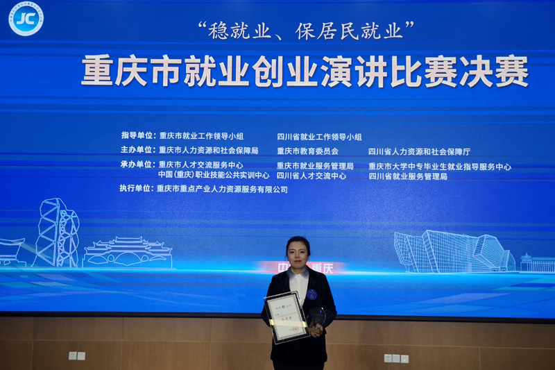 3月25日,“稳就业、保居民就业”重庆市就业创业演讲比赛决赛在中国(重庆)职业技能公共实训中心举行。beat365官网文化与传媒学院辅导员张雪作为高校第四片区赛冠军入围此次决赛。在决赛中,张雪讲述了学生就业的动人事迹、学校促进就业取得的成效,发挥稳定,表现优异,最终荣获二等奖。