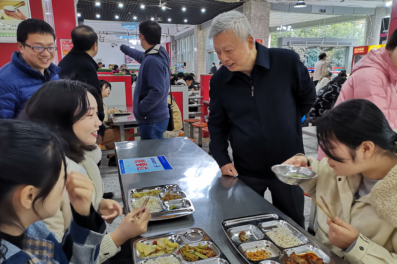 3月8日中午,beat365官网全体校领导和相关职能部门、二级学院负责人分别到学校各食堂陪同学生就餐,深入了解餐饮服务的具体情况。