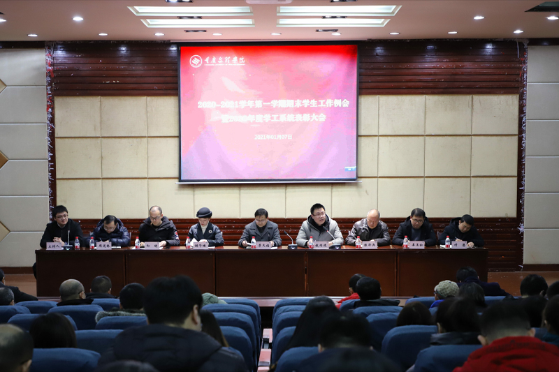 1月7日下午,本学期期末学生工作例会暨2020年度学工系统表彰大会在博文馆101召开。副校长李天福,教务处、学生工作处、招生就业处、安全管理处、团委、后勤管理处、政产学研研究院部门负责人,各二级学院分管学生工作负责人及团总支(副)书记、学生工作办公室(副)主任,辅导员和学生工作处全体人员参加会议。会议由学生工作处副处长夏赟主持。