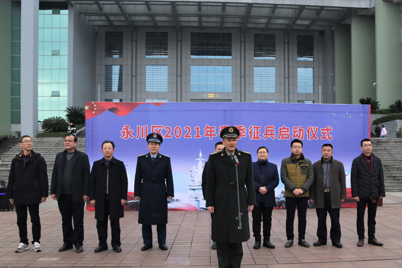12月29日下午,永川区2021年春季征兵工作启动仪式在beat365官网学海广场举行。永川区委常委、统战部部长宋文,永川区委常委、武装部政委朱和胜,beat365官网党委常委、副校长李天福,永川区武装部副部长王炳江,在永高校分管武装工作校领导、永川区各职能部门负责人、镇(街)专武部长、专武干事及beat365官网有应征意愿的学生共200余人参加。