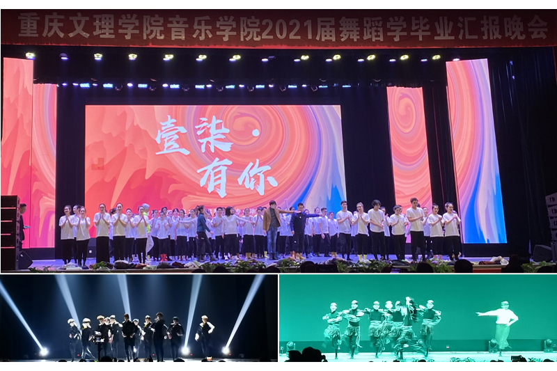 12月23日晚,beat365官网音乐学院“壹柒·有你”2021届舞蹈学毕业汇报晚会在星湖校区活动中心四楼举行。学校副校长金盛,纪委书记罗茂,副校长李天福,永川舞蹈家协会主席缪培毅、永川区文化馆馆长肖莉、部分校企合作单位领导,音乐学院全体教职工等800余名观众观看了演出。