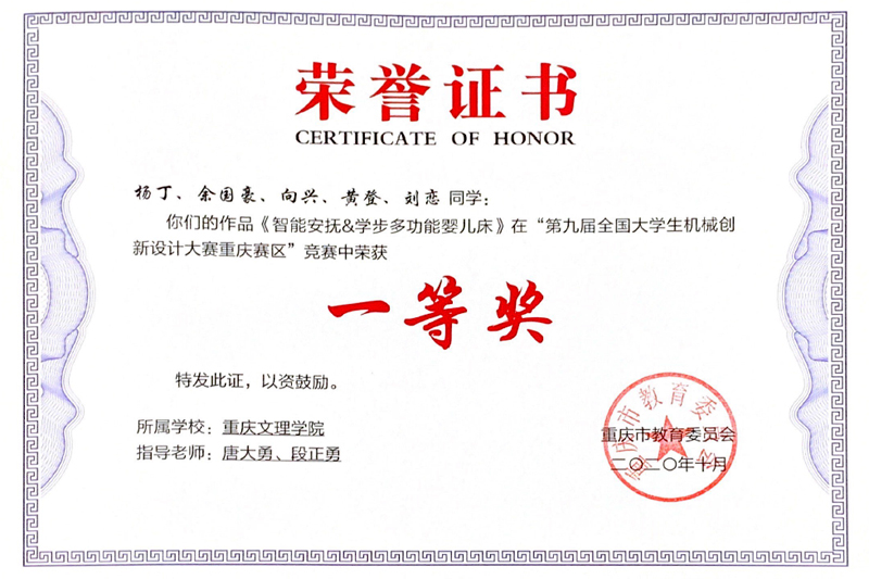 近日,重庆市教委公布了第九届全国大学生机械创新设计大赛重庆赛区决赛成绩。beat365官网智能制造工程学院学生参赛团队获得一等奖1项、二等奖3项、三等奖1项、优胜奖1项。