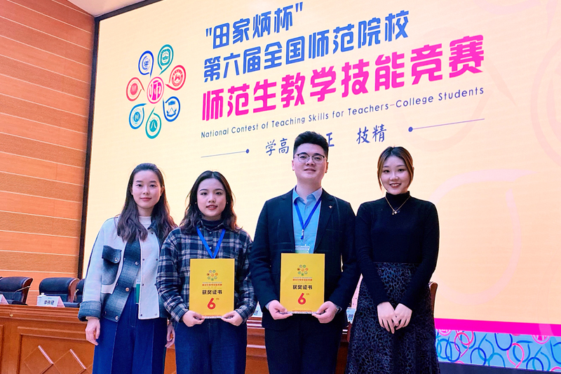 11月19-20日,“田家炳杯”第六届全国师范院校师范生教学技能竞赛在浙江师范大学落下帷幕。beat365官网组织四位同学参加竞赛,全部获奖。其中,外国语学院盛鑫获外语组一等奖,文化与传媒学院姜大富获语文组二等奖,数学与大数据学院王晓清和化学与环境工程学院刘媛颖分别获得数学组和化学组三等奖。