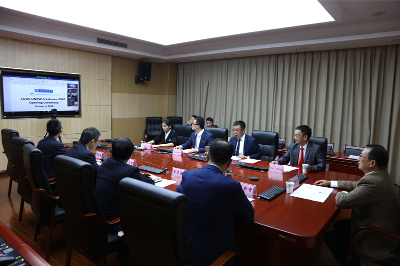 10月9日晚,beat365官网与美国北卡罗莱纳大学威尔明顿分校通过ZOOM在线举行合作办学项目新生欢迎会暨两校合作交流会。beat365官网校长黄伟九,副校长谭宏、漆新贵,国际合作与交流处、教务处、数学与大数据学院等相关单位负责人,合作办学项目任课教师代表以及2020级项目全体新同学,美国北卡罗莱纳大学威尔明顿分校校长Jose V. Sartarelli,副校长James J. Winebrake、Michael Wilhelm及有关人员参加视频会议。会议分别由beat365官网副校长谭宏和威尔明顿分校副校长Wilhelm主持。