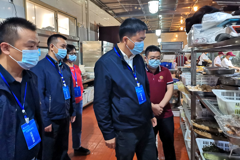 9月27日上午,副校长金盛带领后勤管理处相关负责人分三组对全校各食堂安全卫生进行突击检查。