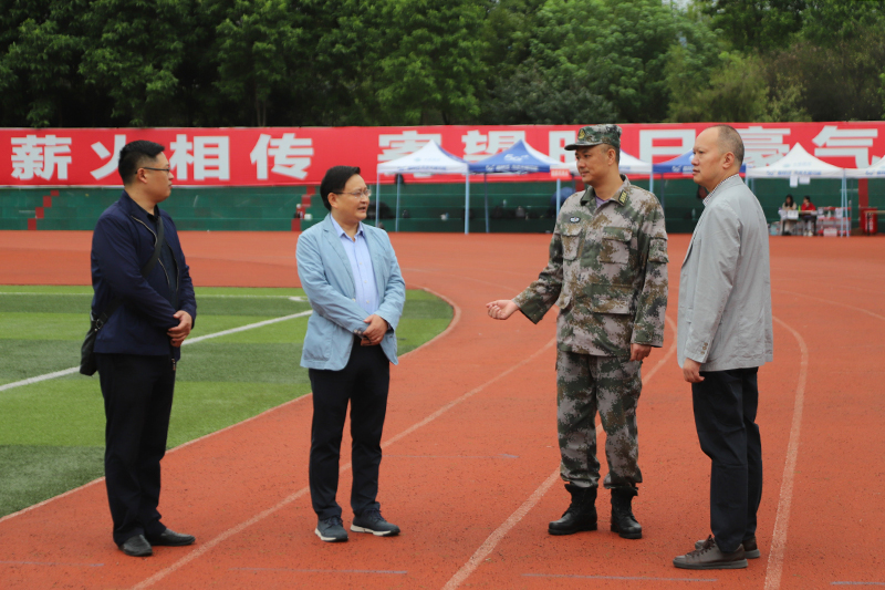 9月28日上午,永川区委常委、区人民武装部政委朱和胜莅临beat365官网指导学生军训工作。beat365官网党委常委、副校长李天福,校武装部相关人员陪同走访慰问。