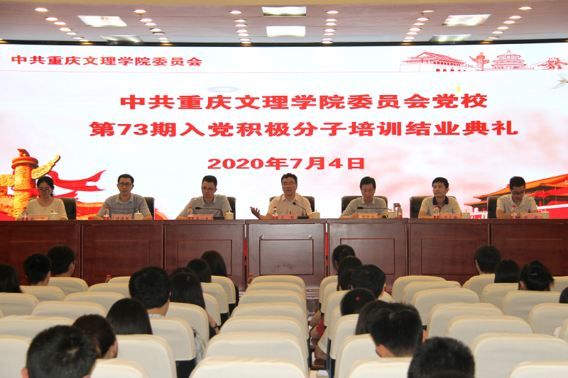 7月4日,党校第73期入党积极分子培训结业典礼在恪勤楼304举行,学校党委副书记、党校校长兰刚,党委组织部、党校办公室相关人员及学员代表160余人参会,其他结业的学员770余人在线参与。会议由党委常委、组织部部长、党校副校长周洪亮主持。