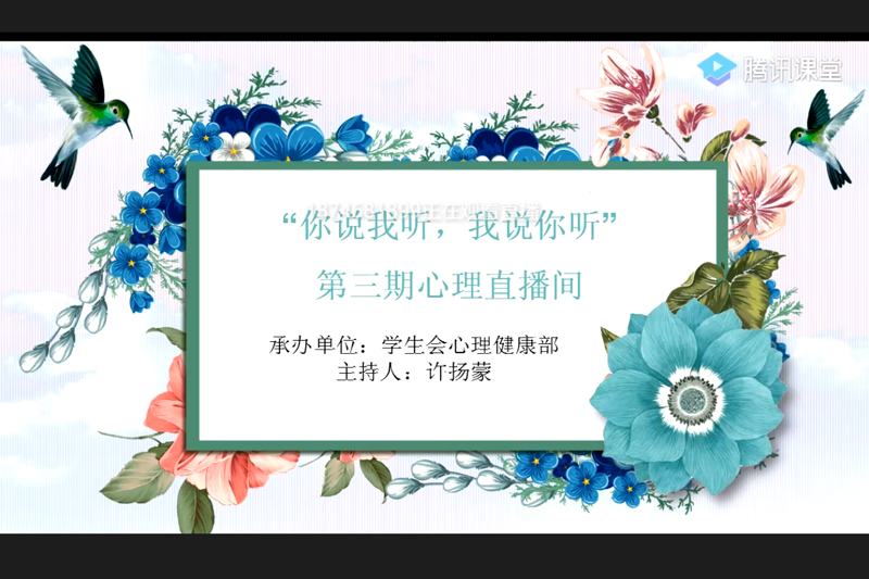 6月10日下午,学生工作处联合蔚蓝心理健康教育与咨询中心开展了第三期“你说我听 我说你听”线上心理直播间之心理委员专题培训,学校全体班级心理委员、院校心理健康社团组织学生干部参加培训。