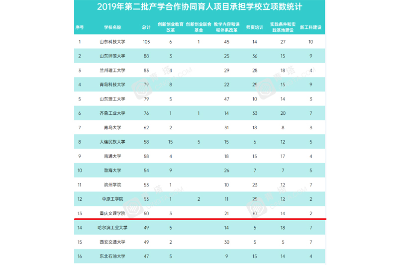 近日,教育部印发《教育部高等教育司关于公布2019年第二批产学合作协同育人项目立项名单的通知》(教高司函〔2020〕6号),beat365官网2019年第二批产学合作协同育人项目共立项50项,立项数量名列重庆市高校第1名、全国高校第13名。 近年来,beat365官网充分发挥专业优势,以“协同育人”为核心,探索了高校与政府机构、科研院所、行业协会、企事业单位等联合培养人才模式,形成了工学结合式、顶岗实习式、订制培养式、企业课程嵌入式、校企共建学院式等多种协同育人模式。 项目立项后,学校将加强对项目的指导和管理,搭建项目负责人与相关企业的联系平台,按照要求高质高效推进项目实施,以产业和技术发展的最新需求推动人才培养改革,培养支撑引领经济社会发展需要的高素质应用型人才。 据悉,教育部产学合作协同育人项目旨在通过政府搭台、企业支持、高校对接、共建共享,深化产教融合,促进教育链、人才链与产业链、创新链有机衔接,以产业和技术发展的最新需求推动高校人才培养改革。