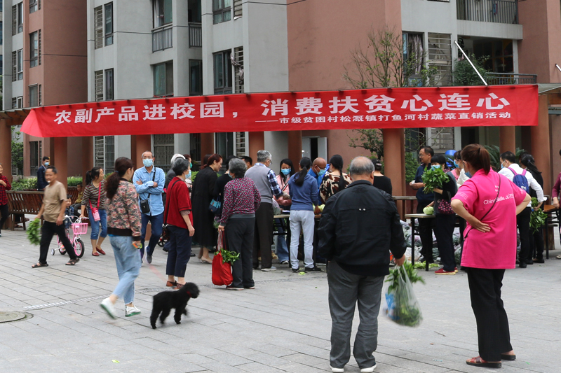 为助力打好脱贫攻坚战,5月26日,学校邀请松溉镇打鱼河村到红河校区人和居开展“农副产品进校园 消费扶贫心连心”蔬菜直销活动。