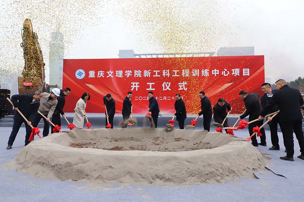 12月24日上午,学校在红河校区A区举行新工科工程训练中心项目开工仪式。市教委基建后勤处处长梁杰,永川区委常委、副区长、高新区党工委书记宋文,学校党委书记蔡家林、校长黄伟九、副校长李天福出席开工仪式,副校长金盛主持开工仪式。