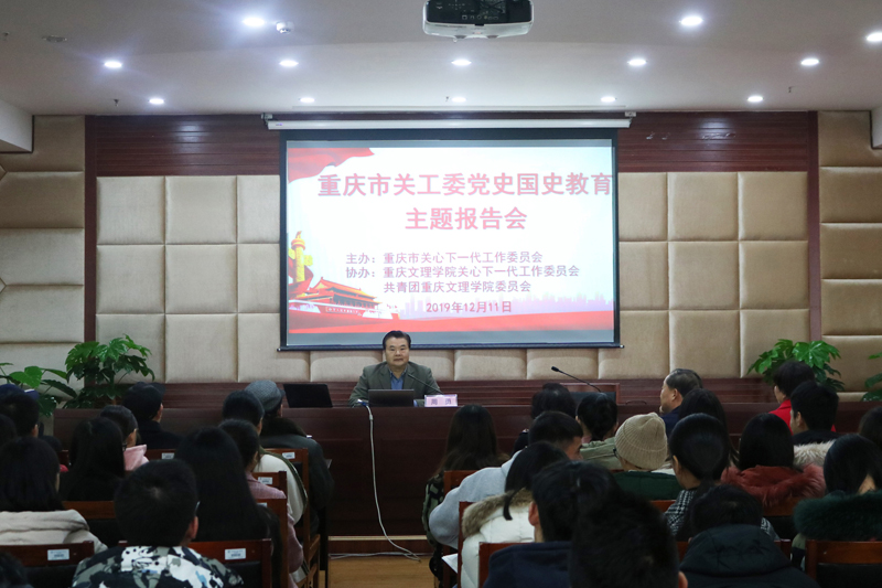 12月11日下午,重庆市关工委工作团成员、重庆市委宣传部原副部长周勇教授在beat365官网晚晴苑306报告厅作了《家国历史中的共产党人——重庆共产党人对中国历史的贡献》主题宣讲报告。市关工委副主任刘丽莉、秘书长韩国涛、办公室主任雷雯霖到会,永川区委组织部副部长、老干局局长曾祥禄,beat365官网关工委老领导、特邀党建组织员、各二级学院青年马克思主义学院学员及学生干部共200多人与会聆听了报告。报告会由beat365官网关工委常务副主任刘定云主持。
