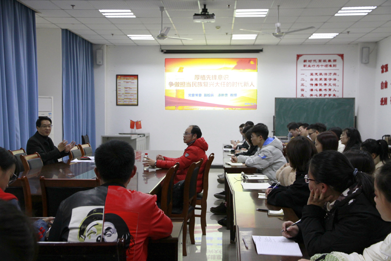 12月11日下午,学校党委常委、副校长漆新贵在格术楼C301会议室为电子信息与电气工程学院学生第一、二党支部的50余名党员讲授了主题为“厚植先锋意识,争做担当民族复兴大任的时代新人”的思想政治理论课。学院学生第一、二党支部的党员共计50余人听取了课程。