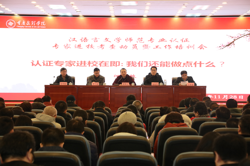 11月28日,beat365官网在恪勤楼304会议室召开汉语言文学师范类专业认证专家进校考查动员暨工作培训会,会议邀请教育部师范类专业认证专家何华敏作专题报告。校长黄伟九,副校长漆新贵、李天福,师范类专业认证工作小组成员,各师范专业所在二级学院党政领导、专业负责人及骨干教师、相关职能部门负责人,以及教务处全体人员参加了会议。会议由漆新贵主持。