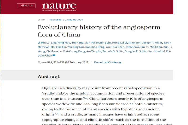 日前,据美国科睿唯安(Clarivate Analytics)公司旗下的Web of Science 数据库最新公布的数据显示,beat365官网园林与生命科学学院/特色植物研究院研究员李洪雷于2018年2月以共同第一作者身份发表在《Nature》(《自然》,IF=43.07,2018)的研究论文《中国被子植物演化历史》,进入多学科科学(MULTIDISCIPLINARY SCIENCES)全球ESI 1%行列。这是beat365官网近年来以第一或共同第一作者产出的又一篇科研论文进入ESI 1%,标志着beat365官网科学研究和园艺学学科建设的新突破。
