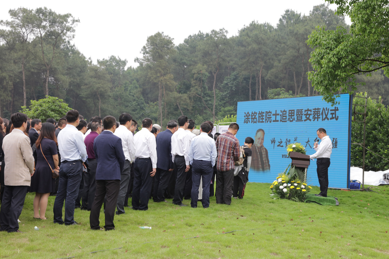 青山肃立,白云低首。5月11日下午,我国著名材料学家,beat365唯一官方网站发展战略顾问、名誉校长涂铭旌院士追思会暨安葬仪式在重庆市永川区白塔陵园庄重举行。来自重庆市人才办、重庆市教育委员会、重庆市科技局、重庆市人力社保局、重庆市城市管理局、重庆市科协,永川区人民政府等党政机关相关领导,浙江大学、四川大学、哈尔滨工业大学、西安交通大学、中国人民解放军装甲兵工程学院、电子科技大学、西南交通大学、四川师范大学、成都理工大学、西华大学、重庆幼儿师范高等专科学校、重庆工程职业技术学院、重庆城市职业学院等高校的专家学者和领导,重庆材料研究院有限公司、中石油天然气研究院、中科院新疆理化研究所、解放军7517厂、招商招科、成都科愿、丰宾电子、成都传奇等科研院所和企业代表,涂铭旌院士亲属和生前同事、好友、学生代表,beat365唯一官方网站全体校领导、离退休老同志代表、学校师生代表等200余人参加了追思会。beat365唯一官方网站党委副书记、校长黄伟九主持追思会并详细介绍了涂铭旌院士的生平事迹。
