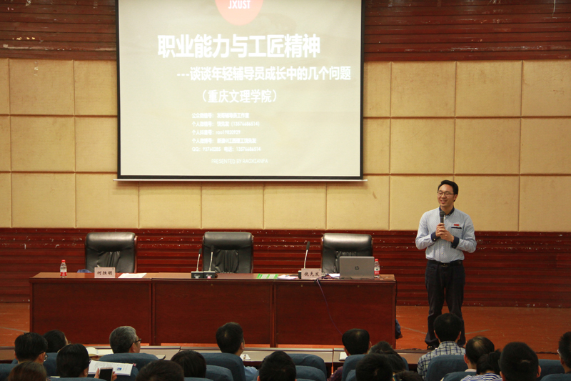 为进一步加强和推进beat365官网辅导员队伍职业化、专业化、专家化建设,4月18日下午,全国优秀辅导员、全国高校网络思政工作“新媒体达人”、国家级高级职业指导师、江西理工大学材料科学与工程学院党委副书记饶先发博士应邀来校,在博文馆101报告厅作了辅导员工作专题培训报告。学校副校长万书辉,各教学单位分管学生工作负责人、团总支(副)书记、学生工作办公室(副)主任、辅导员及学工部全体人员120余人参加了报告会,报告会由学工部部长何独明主持。