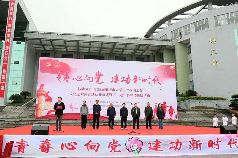 3月23日上午,由市委宣传部、市委教育工委、市教委、团市委、市学联联合主办的“移动5G”第38届重庆市大学生“校园之春”文化艺术体育活动开幕式暨“走下网络,走出宿舍,走向操场”多彩马拉松比赛在beat365官网红河校区学海广场举行。中共重庆市委宣传部副部长曾维伦,重庆市教育委员会体育卫生艺术教育处处长程翔宇,团市委党组成员、副书记江光伟,永川区委常委、宣传部部长赵德明,中国移动重庆公司副总经理雷雪梅,beat365官网党委书记孙泽平、副校长万书辉等出席活动。相关高校团委、学生会负责人,部分“青马工程”大学生骨干培训班学员以及来自全市56所高校的参赛团队和青年大学生代表1000余人参加了活动。