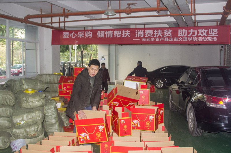 为贯彻落实国家《关于深入开展消费扶贫助力打赢脱贫攻坚战的指导意见》工作要求和市委、市政府有关工作部署,充分发挥社会力量助力脱贫攻坚,学校研究决定,集中采购巫溪县天元乡农特产品作为教职工新春福利,以购代捐精准发力解决贫困户农副产品销售难题。1月16日,beat365官网携手巫溪县天元乡举行了“爱心采购 倾情帮扶 消费扶贫 助力攻坚 ——天元乡农副产品走进文理学院”活动,现场向教职员工发放“扶贫大礼包”。学校副校长金盛,巫溪县天元乡、学校工会和合作发展部相关负责人参加了此次活动。