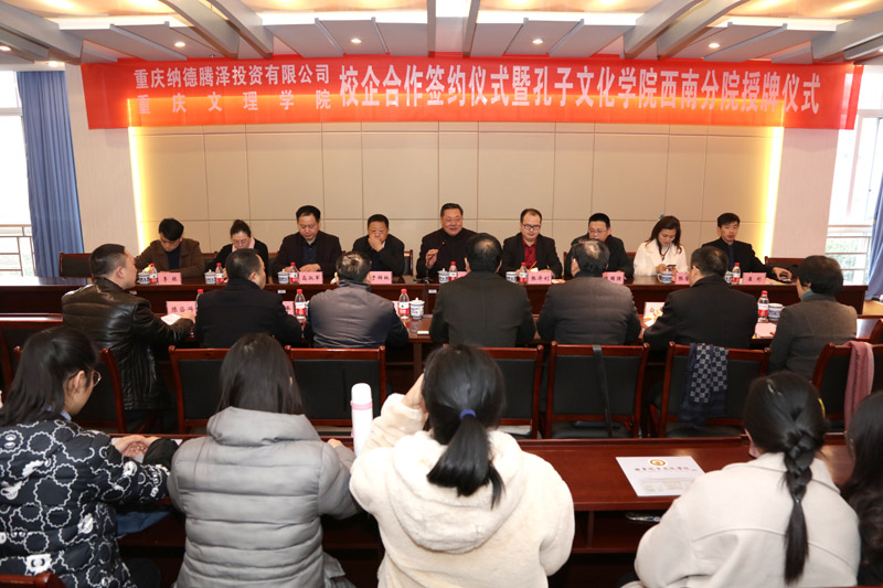 1月17日上午,学校与重庆纳德腾泽投资有限公司战略合作签约仪式在恪勤楼422举行。曲阜孔子文化学院院长颜廷淦,重庆纳德腾泽投资有限公司董事长兼总裁张泽钊,学校副校长漆新贵,孔子文化学院、重庆纳德腾泽投资有限公司、beat365官网合作发展部、教学部、文化与传媒学院、继续教育学院相关负责人及师生代表参加了签约仪式。签约仪式由合作发展部副部长陈盛兴主持。