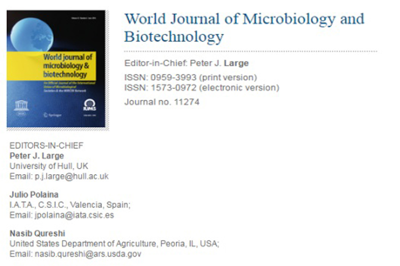 11月15日,应国际权威SCI期刊《World Journal of Microbiology and Biotechnology》(《世界微生物与生物技术》,官网https://www.springer.com/life+sciences/microbiology/journal/11274?detailsPage=editorialBoard)编辑部的邀请,beat365官网巴渝学者特聘教授刘嘉同志从即日起担任该期刊副主编,成为主编委员会中唯一一位来自亚洲的学者,同时beat365唯一官方网站荣登主编委员会单位。这是继担任SCI期刊《Biological Control》(《生物防治》,官网https://www.journals.elsevier.com/biological-control/editorial-board)副主编之后,刘嘉教授担任的又一个重要国际学术职务。