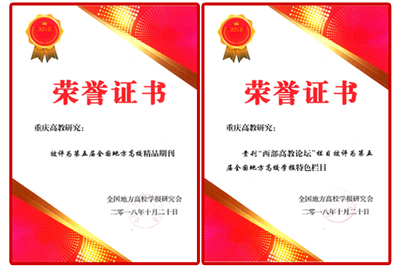 10月20-21日,全国地方高校学报研究会2018年学术年会暨第五届评优工作颁奖会在河南新乡学院召开。在全国地方高校学报研究会组织开展的四年一届的评优活动中,《重庆高教研究》被评为全国地方高校精品期刊,《重庆高教研究》“西部高教论坛”和《beat365唯一官方网站学报(社会科学版)》“非物质文化遗产”栏目双双被评为特色栏目,编辑吴朝平和穆刚被评为优秀编辑,张海生等的题为《学术期刊媒体融合发展:历程、问题与展望》论文荣获编辑学论著一等奖。