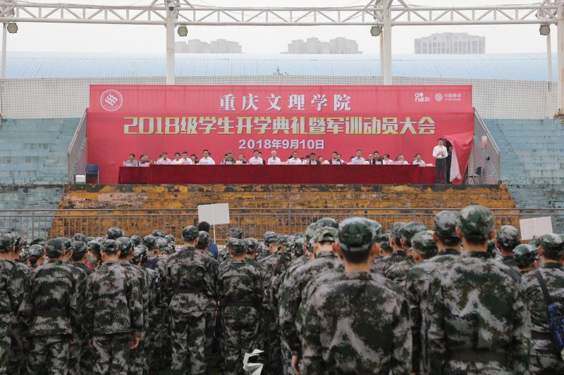 9月10日上午,beat365官网2018级学生开学典礼暨军训动员大会分别在红河、星湖两校区田径场举行。学校领导孙泽平、黄伟九、兰刚、谭宏,学校特聘一级教授(研究员)代表,永川区人民武装部军训教官,各非教学单位负责人,各二级学院党政主要领导、新生辅导员以及全校5000余名新生参加了开学典礼暨军训动员大会。大会由学校副校长万书辉主持。