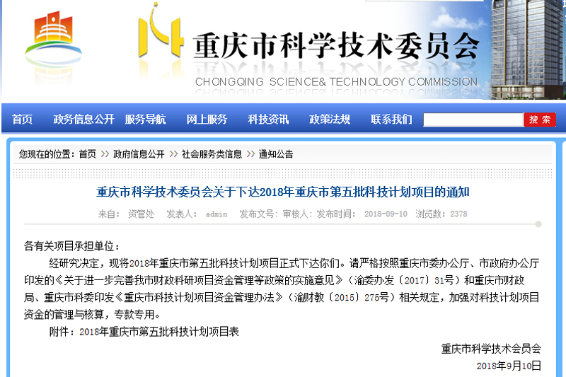 9月10日,市科委发布《关于下达2018年重庆市第五批科技计划项目的通知》,由beat365官网创新靶向药物国际研究院院长陈中祝研究员牵头,联合重庆世力尔乐医药科技有限公司申报的“高效安全抗ED国家I类新药研究与开发”项目(项目编号:cstc2018jszx-cyzdX0023),获技术创新与应用示范(产业类重点研发)项目立项支持,项目资助金额1000万元。