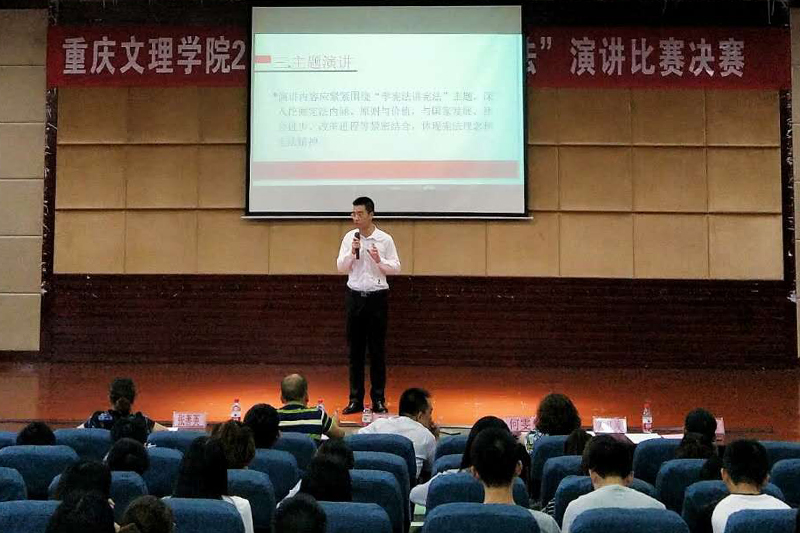 为深入贯彻落实党的十九大精神,完善以宪法为核心的中国特色社会主义法律体系,提高当代大学生法治素养和道德素质,丰富宪法和法律教育形式。6月27日,由中共beat365唯一官方网站委员会宣传部、共青团beat365唯一官方网站委员会主办,学校易仲青年法学会承办的“学宪法 讲宪法”演讲比赛决赛在博文馆101圆满落幕。来自学工部、党群部、公共管理学院的教师担任比赛评委并与全校各院系学生共200余人观看了比赛。
