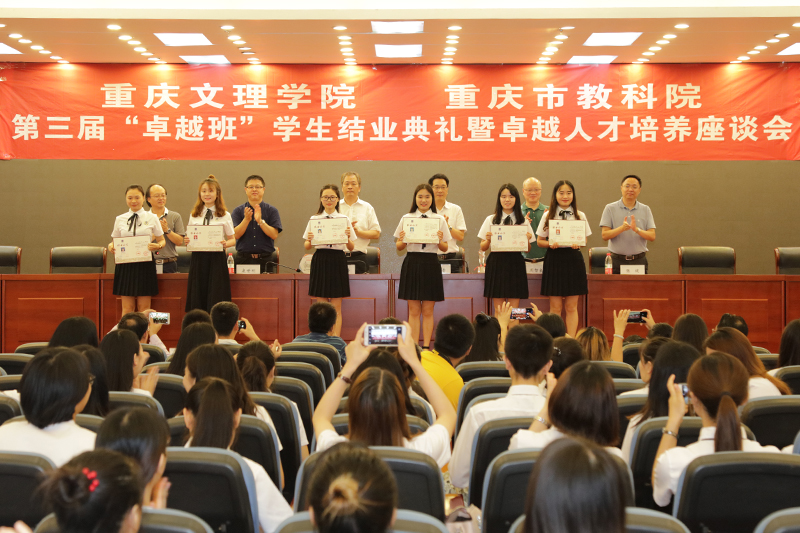 6月20日上午,学校举行了第三届卓越班学员结业典礼暨卓越人才培养座谈会。重庆市教育科学研究院党委书记范卿泽,beat365官网副校长漆新贵,市教科院有关负责人,教学部及相关二级学院分管教学副院长、卓越项目负责人,2014、2015、2016及2017级卓越班全体学员,近300人参加了典礼。结业典礼由教学部副部长凌伟主持。