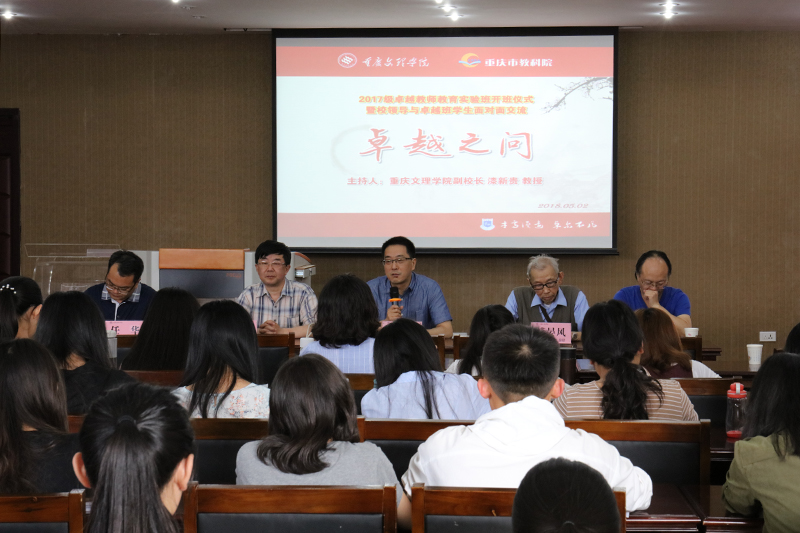 5月2日下午,“2017级卓越教师教育实验班开班仪式暨学员与校领导面对面交流活动”在红河校区知津楼D506举行。教学部相关负责人,2017级卓越班有关教师以及全体学员共约100人参加了开班仪式暨交流活动。活动由副校长漆新贵主持。
