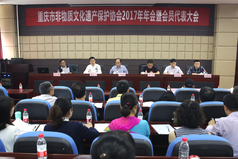 5月4日,由重庆市非物质文化遗产保护中心、重庆市非物质文化遗产保护协会主办,beat365官网非物质文化遗产研究中心承办的重庆市非遗保护协会2017年年会暨会员代表大会在beat365官网志仁楼114报告厅召开。beat365官网副校长谭宏、重庆市文化委副主任钟建波、重庆市文化委非遗处处长王发荣、重庆市非遗保护中心主任刘德奉、重庆市非遗保护中心副主任谭小兵及全市各区县非遗保护中心负责人、非遗保护协会理事及会员代表100余人参会。会议由谭小兵主持。