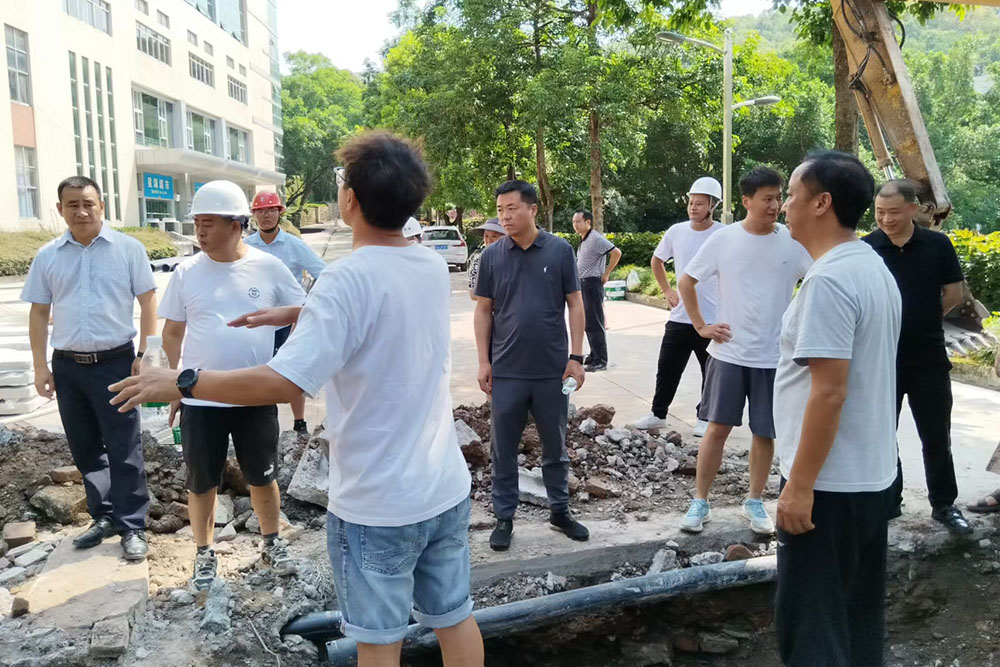 8月22日,副校长金盛在基建后勤处负责人和相关人员的陪同下,深入施工现场,检查基建后勤系统暑期改造项目的推进情况,并亲切慰问了坚守岗位的一线施工人员。