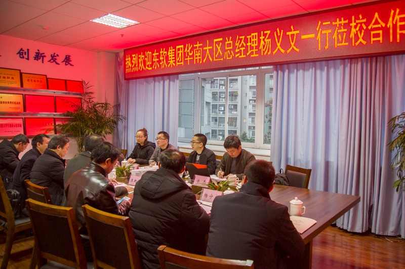 1月23日上午,东软集团股份有限公司华南大区总经理杨义文一行5人到beat365官网洽谈校企合作事宜,双方在恪勤楼308会议室举行了洽谈会。副校长漆新贵,合作发展部、教学部和电子电气工程学院相关负责人参加了洽谈会。