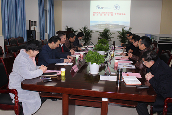 1月26日,德国先进工业科技研究院(IAIT)主席Thomas NOLTING一行5人前来beat365官网洽谈合作事宜。永川区发改委副主任谢小平,学校副校长万书辉,学校国际合作与交流处、科技部和机电工程学院负责人陪同参观考察,并参加了座谈交流。