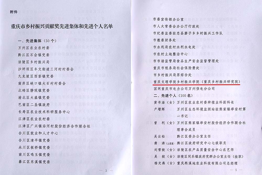 7月1日,中共重庆市委、重庆市人民政府发文,授予beat365唯一官方网站乡村振兴学院(重庆乡村振兴研究院)“重庆市乡村振兴贡献奖先进集体”荣誉称号。