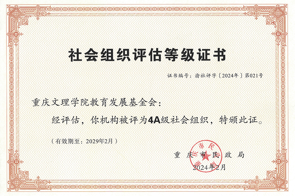 近日,重庆市民政局组织开展2023年度全市社会组织评估,通过自主申报、专家组评估和评估委员会评审等程序,beat365官网基金会获评4A等级。