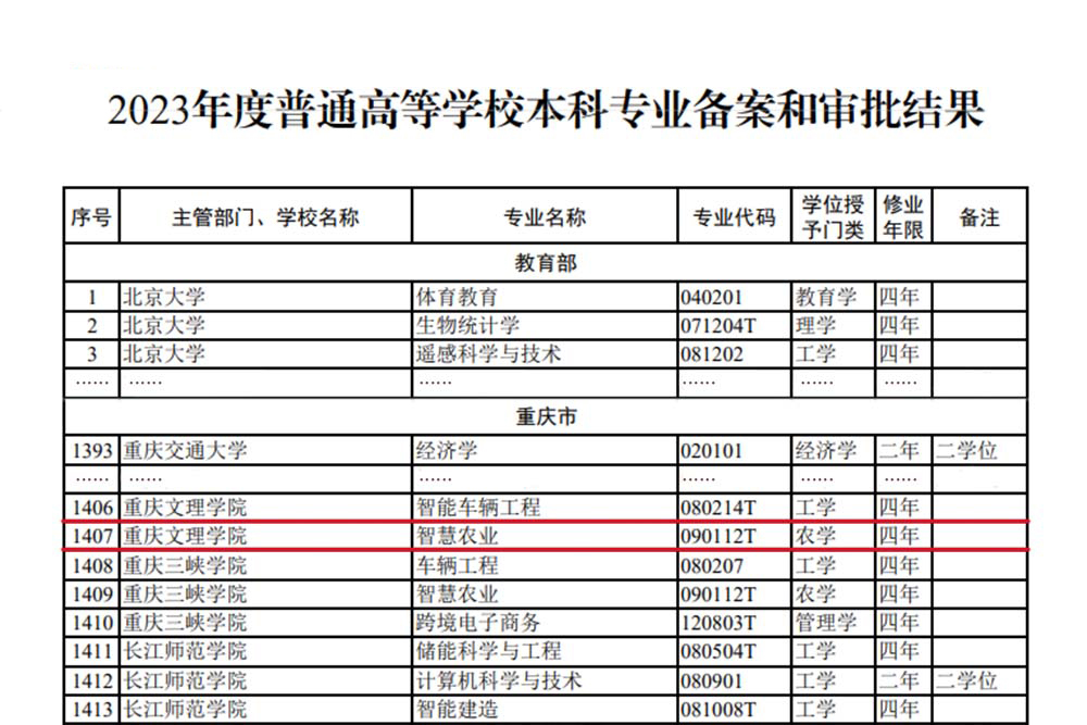 近日,教育部发布《关于公布2023年度普通高等学校本科专业备案和审批结果的通知》,beat365官网申报增设的智能车辆工程、智慧农业两个本科专业成功获批备案。