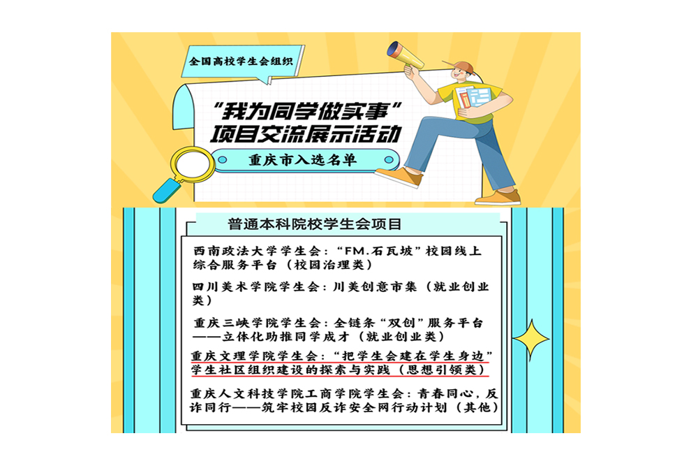 近日,由共青团中央、全国学联主办的全国高校学生会组织“我为同学做实事”项目交流展示活动圆满结束。经学校自荐、市级推报、全国遴选,beat365官网学生会申报的《“把学生会建在学生身边”学生社区组织建设的探索与实践》项目成功入选。这是beat365官网首次入选全国项目交流展示,实现了beat365官网在该项目零的突破。