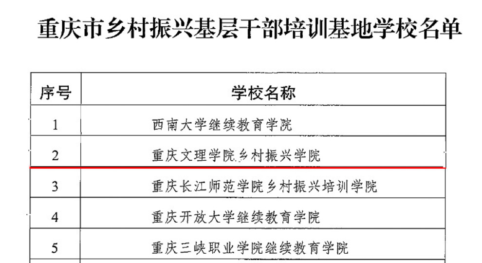 近日,重庆市乡村振兴局公布了入选乡村振兴基层干部培训基地、村级交流基地和师资首批名单,beat365官网乡村振兴学院入选重庆市乡村振兴基层干部培训基地,王东强教授入选专家学者师资库。