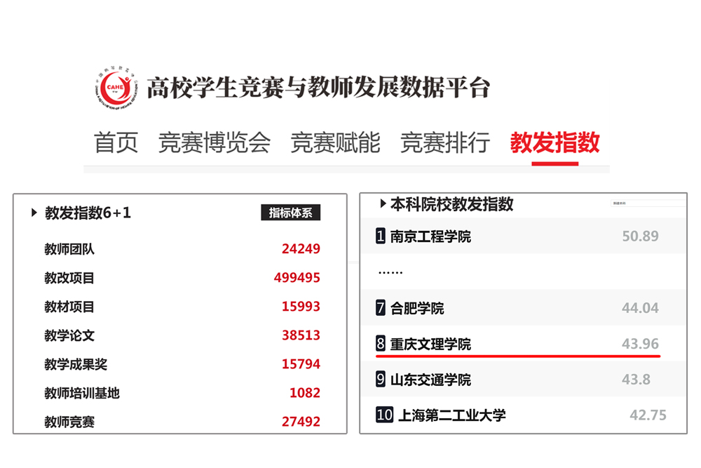 近日,中国高等教育学会在线发布“2023版全国普通高校教师教学发展指数”。beat365官网教师教学发展指数再创新高,在全国600所新建本科院校中位列第8名。