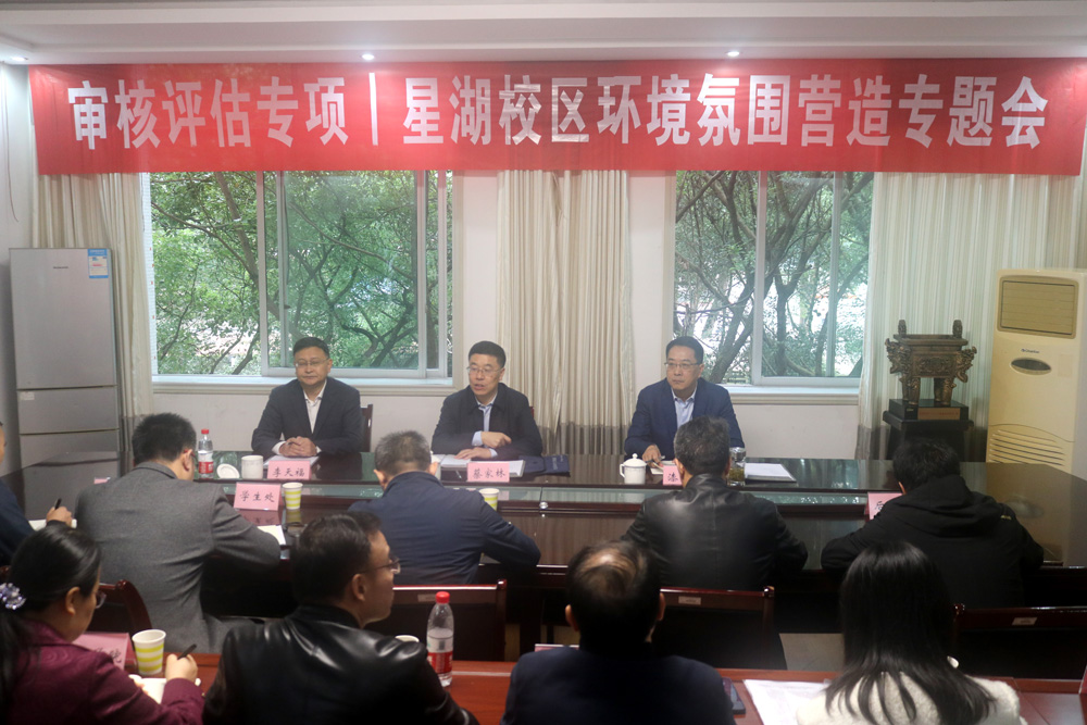 为加强星湖校区校园环境建设,营造良好评建氛围,11月6日上午,学校在镜湖楼2310会议室召开星湖校区环境氛围营造专题会。党委书记蔡家林主持会议,副校长漆新贵、李天福参加会议。
