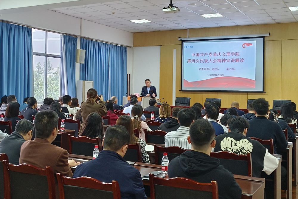 10月25日下午,学校党委常委、副校长金盛在志仁楼114报告厅宣讲学校第四次党代会精神。外国语学院、旅游学院、人工智能学院、继续教育学院(培训学院)、机关第四党总支全体教职工和学生代表参加了宣讲会。宣讲会由继续教育学院(培训学院)党总支负责人主持。